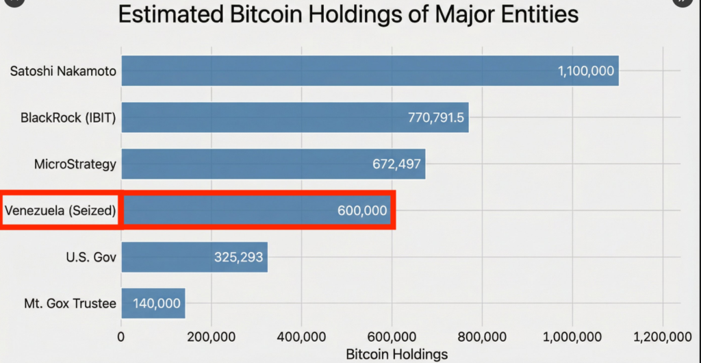 La comparaison avec les géants actuels rend le débat concret. Fin 2025, IBIT est estimé autour de 770 791,5 BTC en garde, d’après des suivis basés sur données publiques. Strategy, de son côté, annonce 672 497 BTC après de nouveaux achats fin décembre 2025. Un Venezuela à 600 000 BTC se retrouverait, sur le papier, dans le même ordre de grandeur. Avec un Bitcoin à 90 000 dollars, 600 000 BTC représenteraient environ 54 milliards de dollars.